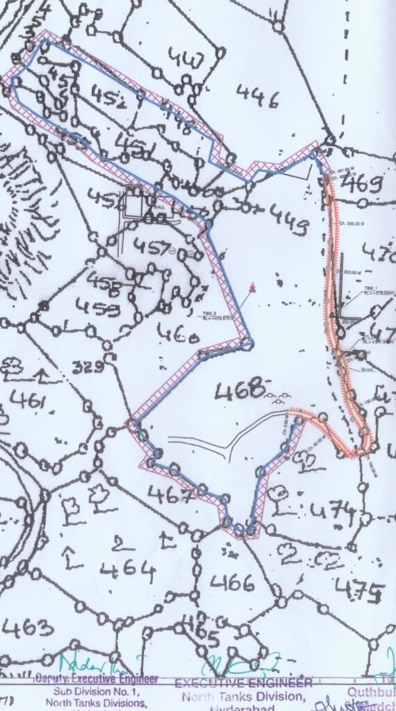 సర్వే ఆఫ్ లేక్స్ నివేదికల ప్రకారం రూపొందించబడిన బంధం కుంట చెరువు కెడాష్డ్రాల్ మ్యాప్…