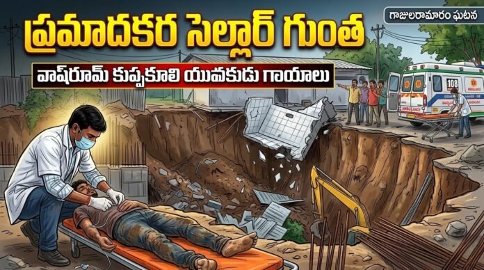 లోకల్ వైబ్స్, గాజులరామారం: హైదరాబాద్ మహానగరంలో రియల్ ఎస్టేట్ జోరు ఊపందుకుంది. ఆకాశహర్మ్యాలు వెలుస్తున్నాయి. కానీ, కొందరు బిల్డర్ల అత్యాశ, నిర్లక్ష్యం సామాన్యుల ప్రాణాల మీదకు తెస్తోంది. నిబంధనలకు విరుద్ధంగా, ఎలాంటి రక్షణ చర్యలు లేకుండా తవ్వుతున్న భారీ సెల్లార్ గుంతలు ‘మృత్యు కుహరాలు’గా మారుతున్నాయి. తాజాగా, గాజులరామారంలో వాష్ రూమ్ కు వెళ్లిన ఓ యువకుడు, బిల్డర్ నిర్లక్ష్యంతో లోతైన గుంతలో పడి ప్రాణాపాయ స్థితికి చేరుకున్నాడు.