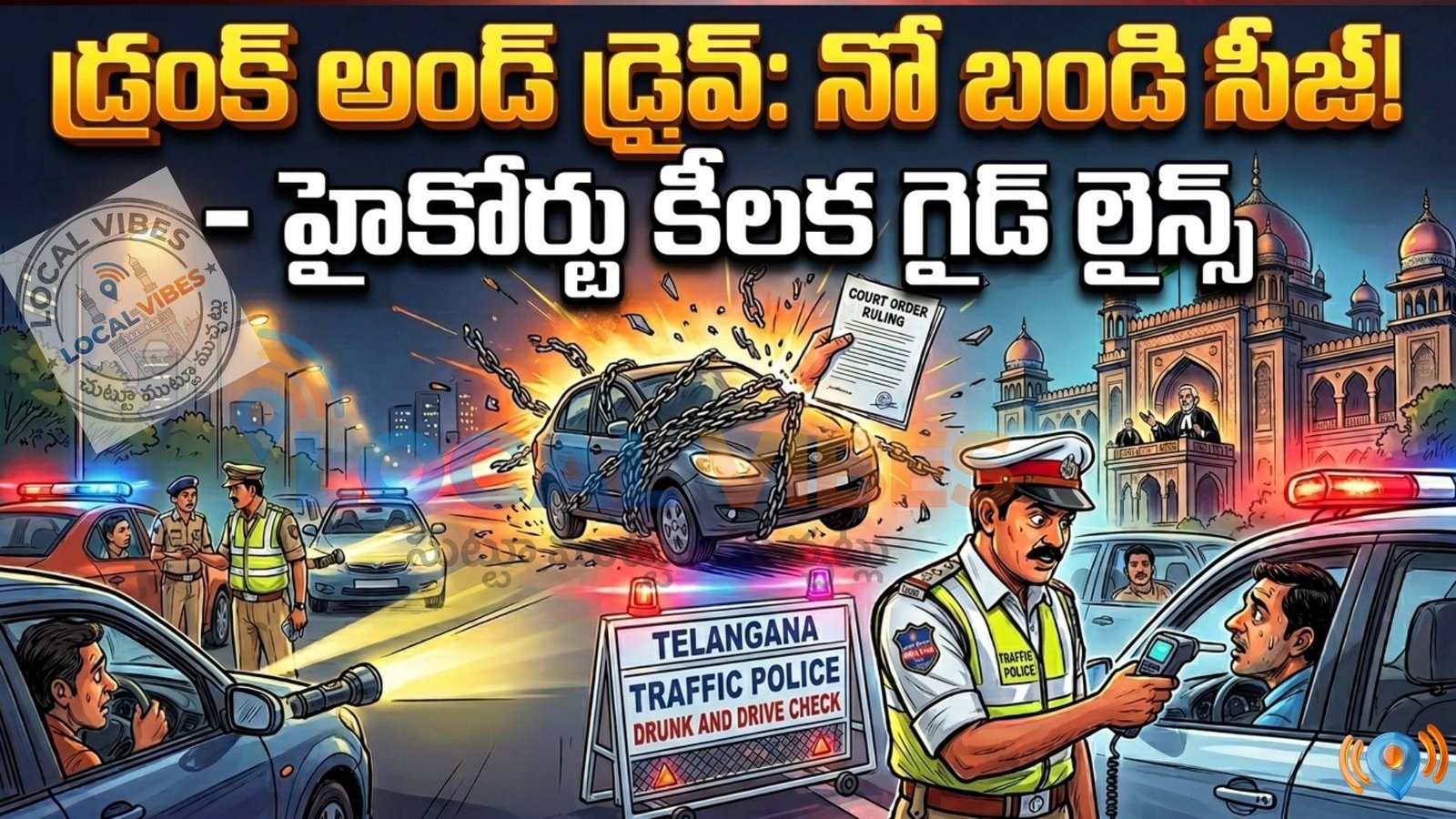లోకల్ వైబ్స్, పేట్ బషీరాబాద్: అర్ధరాత్రి డ్రంక్ అండ్ డ్రైవ్లో దొరికిపోతే.. ఇక మీ వాహనం పోలీస్ స్టేషన్ పాలు కానక్కర్లేదు! వాహనాలను రోజుల తరబడి స్టేషన్లలో బంధించి, శాశ్వతంగా సీజ్ చేసే హక్కు పోలీసులకు లేదని తెలంగాణ హైకోర్టు మరోసారి కుండబద్దలు కొట్టింది. నిబంధనలకు లోబడి తగు జాగ్రత్తలు తీసుకుని బండిని యజమానులకు అప్పగించాల్సిందేనని తేల్చి చెప్పింది. పౌరుల ఆస్తుల హక్కుల కోణంలో, పోలీసుల వేధింపుల నుంచి రక్షణ పరంగా ఇది స్వాగతించదగ్గ పరిణామమే అయినా.. అదే సమయంలో రోడ్డు ప్రమాదాల నివారణపై ఇది తీవ్ర ప్రభావం చూపుతుందనే ఆందోళనలూ వ్యక్తమవుతున్నాయి. అసలు డ్రంక్ అండ్ డ్రైవ్ కేసులలో వాహనాల జప్తు విషయంలో పాత తీర్పు ఏం చెబుతోంది? కొత్త తీర్పు నేపథ్యం ఏమిటి? అన్నదానిపై ఒక సమగ్ర కథనం.