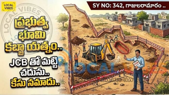 లోకల్ వైబ్స్, గాజులరామారం: నగర శివారులోని గాజులరామారంలో ప్రభుత్వ భూమిని ఆక్రమించేందుకు కొందరు చేసిన యత్నాన్ని రెవెన్యూ అధికారులు మరోసారి అడ్డుకున్నారు. అక్రమంగా మట్టిని డంప్ చేసి, జేసీబీతో చదును చేస్తున్న ఇద్దరు వ్యక్తులపై పోలీసులకు ఫిర్యాదు చేయడంతో ఈ ఘటన వెలుగులోకి వచ్చింది.