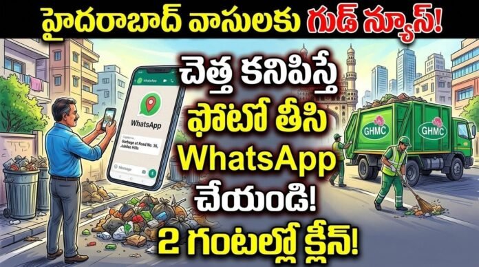 హైదరాబాద్: నగరాన్ని పరిశుభ్రంగా తీర్చిదిద్దేందుకు ప్రభుత్వం మరో కీలక అడుగు వేసింది. ఇకపై మీ వీధిలోనో, రోడ్డు పక్కనో చెత్త కుప్పలు కనిపిస్తే అధికారుల చుట్టూ తిరగాల్సిన అవసరం లేదు. కేవలం ఒక ఫోటో తీసి వాట్సాప్ చేస్తే చాలు.. కేవలం రెండు గంటల్లోనే మున్సిపల్ సిబ్బంది అక్కడ వాలిపోయి సమస్యను పరిష్కరిస్తారు. GHMC, MNC, మరియు CNC కార్పొరేషన్లు సంయుక్తంగా ఈ వినూత్న వాట్సాప్ ఫిర్యాదుల విధానాన్ని అందుబాటులోకి తీసుకొచ్చాయి.