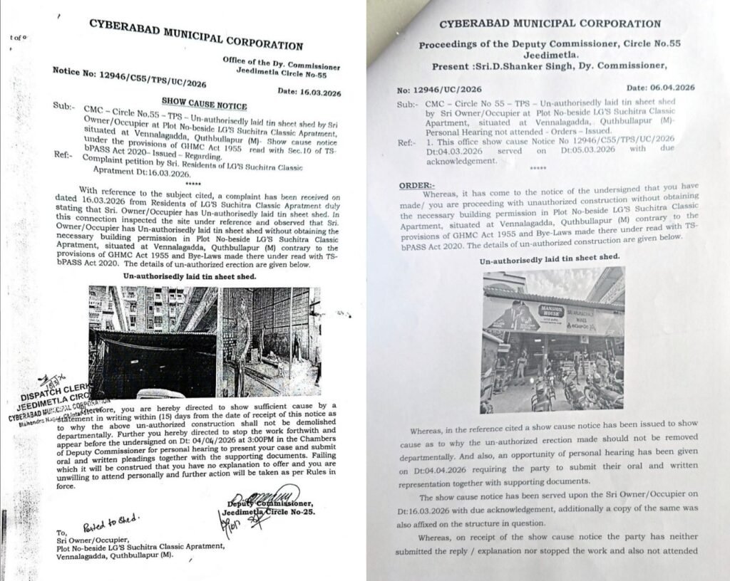 _ మార్చి 16, 2026న షోకాజ్ నోటీసు (12946/C55/TPS/UC/2026) ఇచ్చి చేతులు దులుపుకున్న జీడిమెట్ల సర్కిల్-55 టౌన్ ప్లానింగ్ అధికారులు..?