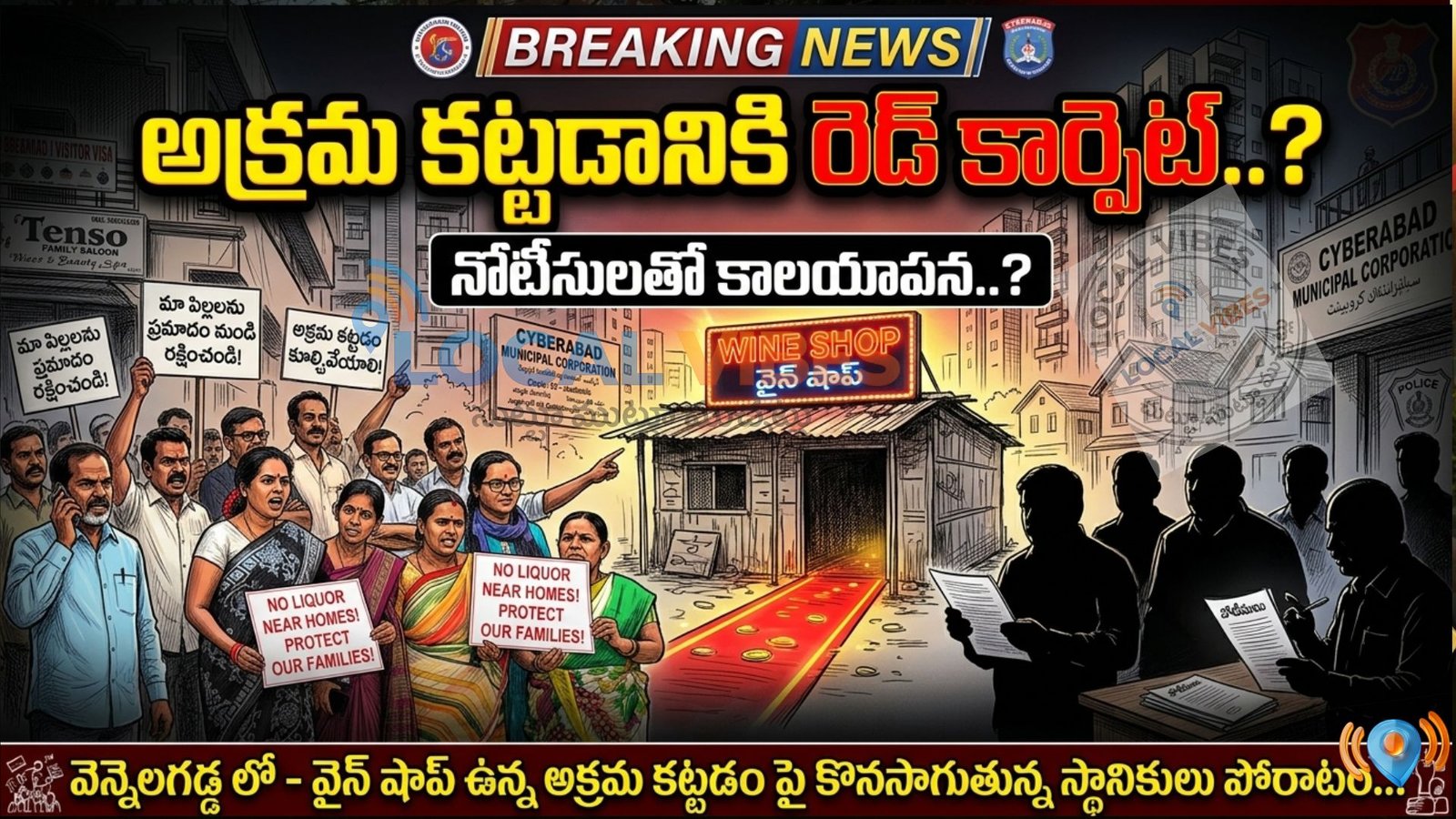 సుచిత్ర-కుత్బుల్లాపూర్ రహదారి వెన్నెల గడ్డ లోని బాట షోరూం సమీపంలో, నివాసాల మధ్య వెలిసిన ఈ అక్రమ నిర్మాణంపై స్థానికులు నెల రోజులుగా అధికారుల చుట్టూ తిరుగుతున్నా.. కనీస స్పందన కరువైంది. ఏకంగా తెలంగాణ హైకోర్టు ఇచ్చిన స్పష్టమైన ఆదేశాలను, స్వయంగా జీహెచ్ఎంసీ కమిషనర్ జారీ చేసిన సర్క్యులర్ను సైతం స్థానిక అధికారులు బేఖాతర్ చేయడం అధికారుల ఉదాసీనతకు అద్దం పడుతోంది. కేవలం నోటీసులు ఇచ్చి చేతులు దులుపుకుంటూ, కూల్చివేత లేదా సీజింగ్ చర్యలు తీసుకోకుండా కాలయాపన చేస్తున్న టౌన్ ప్లానింగ్ అధికారుల తీరుపై ప్రజలు తీవ్ర ఆగ్రహం వ్యక్తం చేస్తున్నారు. అక్రమ నిర్మాణం పూర్తికాకముందే సదరు నిర్మాణంపై చర్యలు తీసుకోవాలని డిమాండ్ చేస్తూ స్థానికులు పెద్ద ఎత్తున నిరసన కార్యక్రమం కూడా చేపట్టారు.